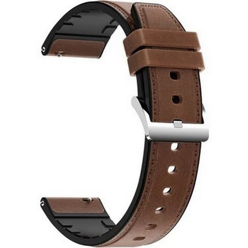 Koyu kahverengi erkek saat kayışı, minimalist tasarım ve çağdaş stilde, gümüş tokalı klasik deri dokusuna sahip. ⌚