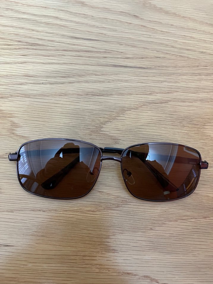 Kahverengi minimalist kadın güneş gözlüğü, çağdaş tasarıma sahip. Koyu camlar, klasik şıklık için detay içerir. Vida gevşemesi mevcut
