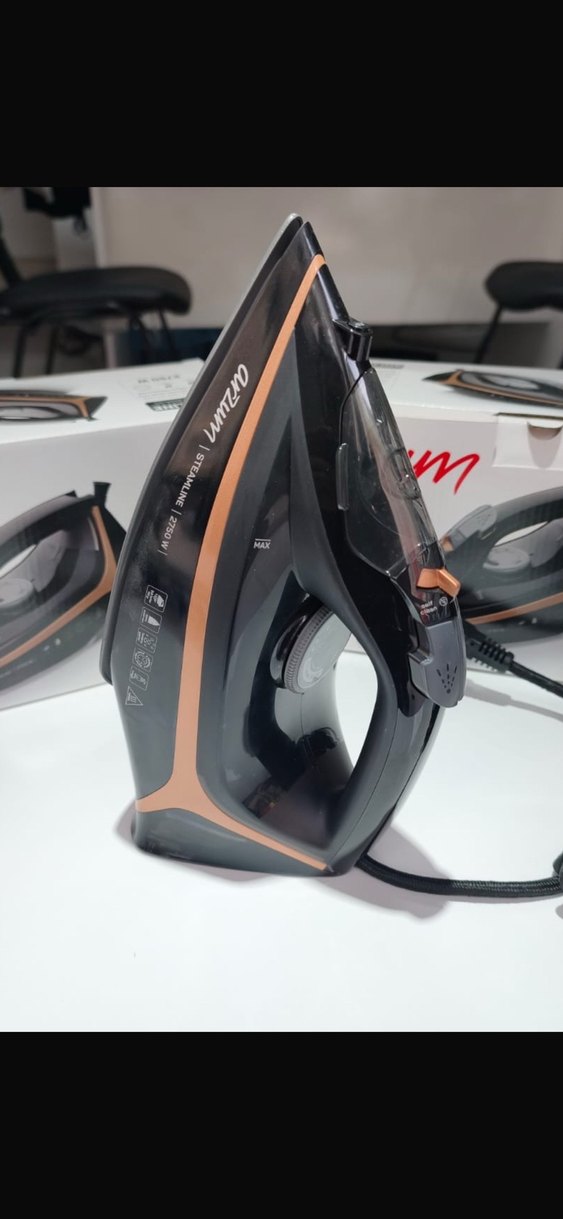 Kahverengi modern tasarımlı buharlı ütü, hassas sıcaklık kontrolü ve sürekli buhar için su tankı içerir. Ütü işleriniz için uygundur.