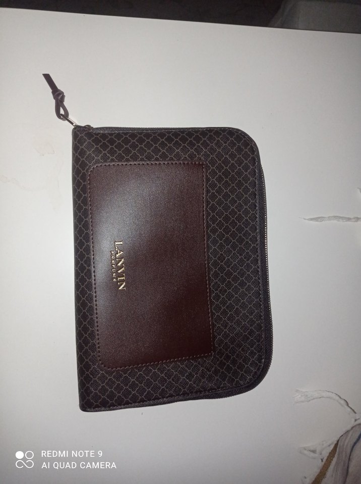 Koyu kahverengi baskılı desene sahip, seyahat kiti Fermuarlı ve Lanvin logosu bulunan deri detaylı. thy hediyesidir icindekilerle beraber gonderilecektir