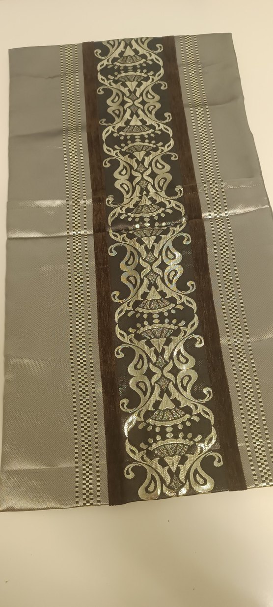 Parlak kahverengi kumaş üzerinde geleneksel nakış desenleri bulunan sıfır ürün hiç bir yırtığı söküğü lekesi yoktur