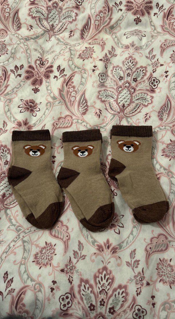 Nakışlı ayı figürlü kahverengi bebek çorapları, gri detaylarla yumuşak ve rahat kumaştan üretilmiştir.