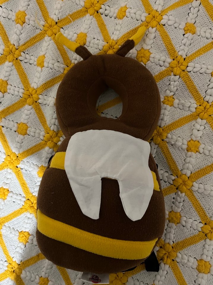 Koyu kahverengi, nakış detaylı, yumuşak ve rahat bebek önlüğü. Sevimli arı formunda tasarlanmıştır.