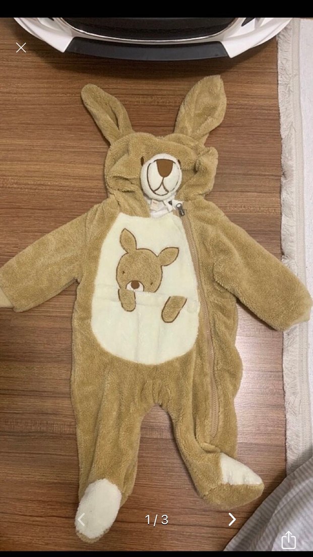 Kahverengi ve gri tonlarda, nakışlı geyik detayı ve kürk detaylı yumuşak, sıcak bebek tulumu.