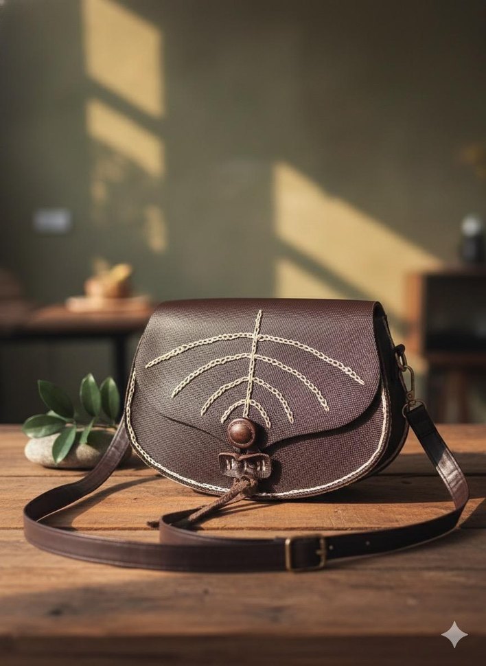 hakiki deriden yapılmıştır. Kahverengi deri, bohem tarzı kadın çantası, nakışlı desenlerle ve tokalı kapanışıyla günlük kullanıma uygun.
