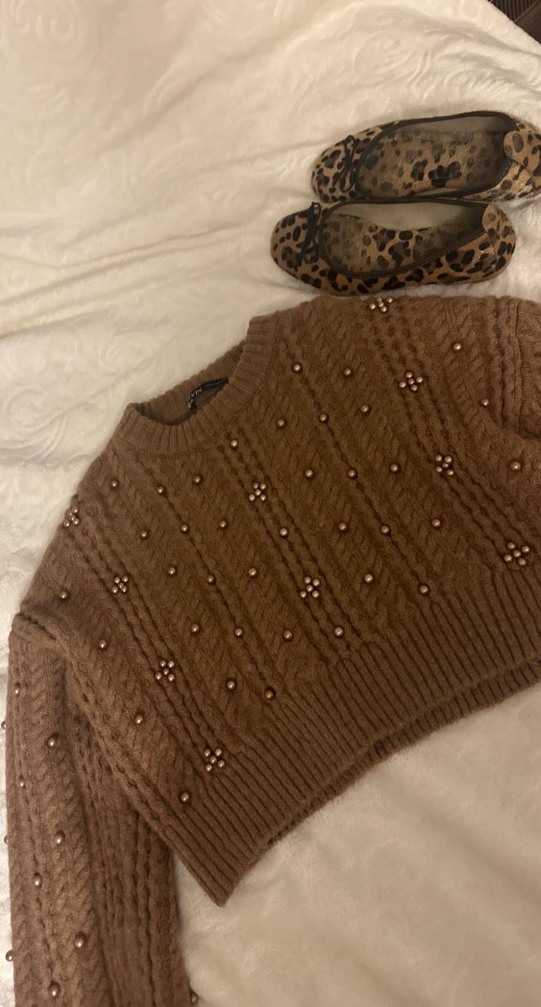 Kahverengi Nakışlı bronz incili Örgü Kadın Kazak
