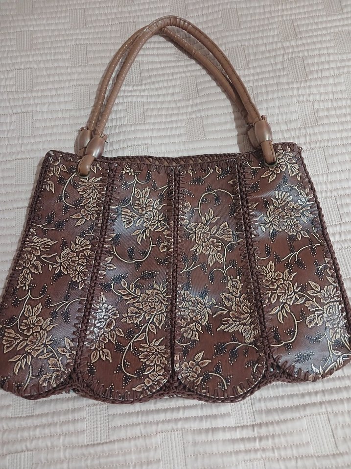 Eskileri sevenler koşuuuun! Kahverengi çanta, çiçek desenleri ve dantel detaylara sahip, günlük kullanıma uygun bohem tarzda bir üründür.
