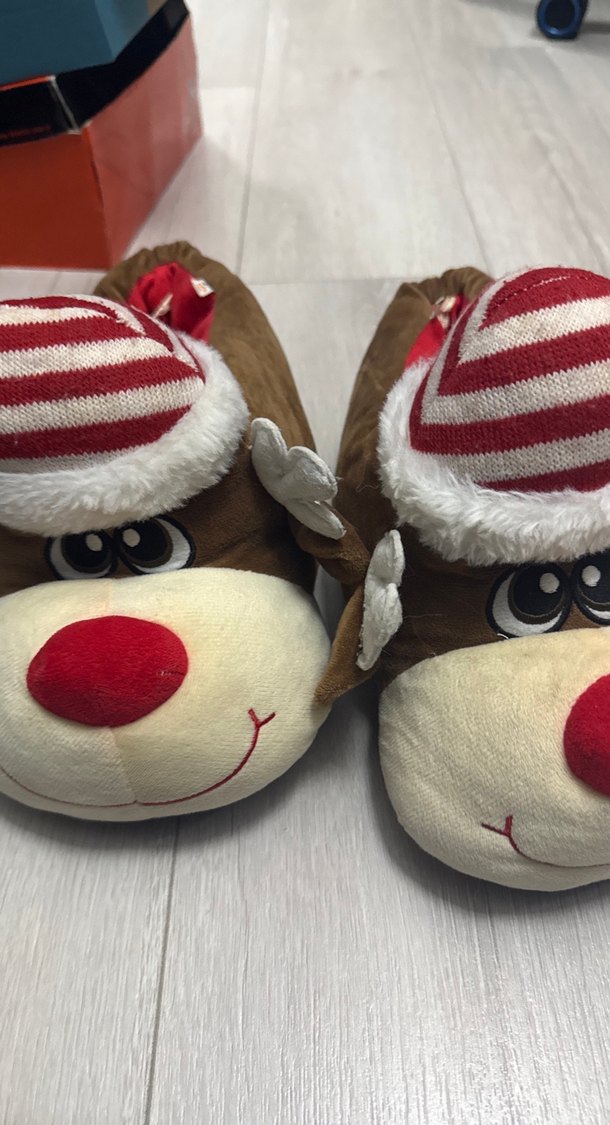 Renkli nakış detaylı, yumuşak kürklü kahverengi erkek çocuk ev terliği, sıcaklık ve konfor sağlar.
