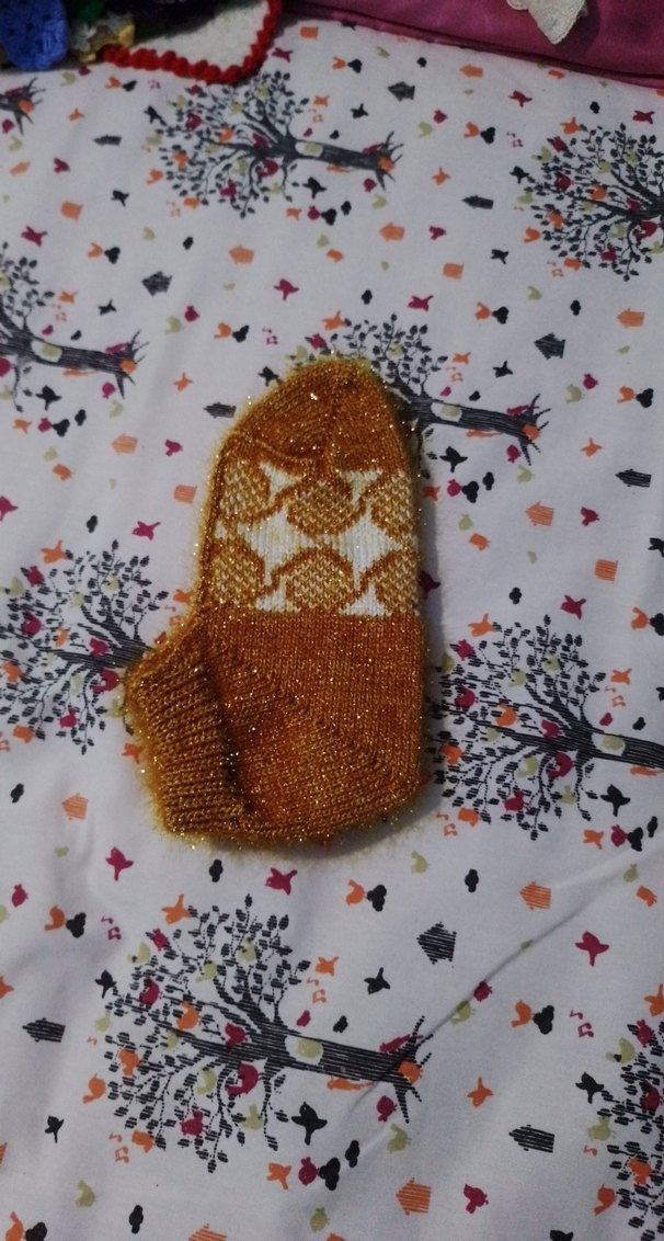Renkli nakışlı desenlere sahip kahverengi fırın eldiveni, yemek pişirirken ısı koruması sağlar.