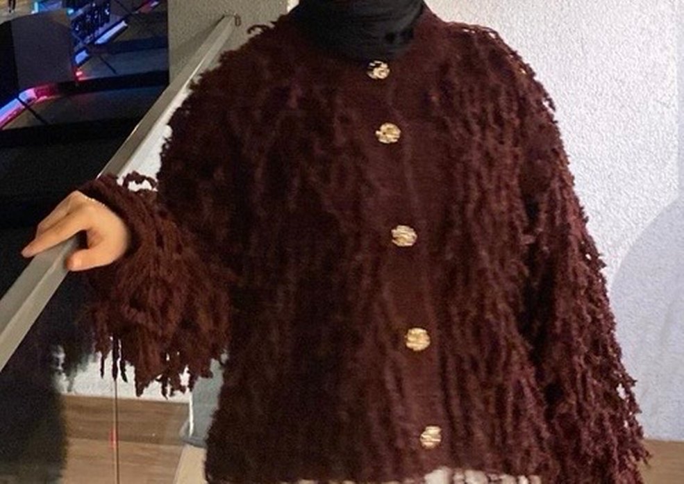 Kahverengi, nakışlı ve kürk detaylı örme hırka. Uzun kollu, notched yakalı, bol kesim ve günlük kullanıma uygun bohem tarzda.