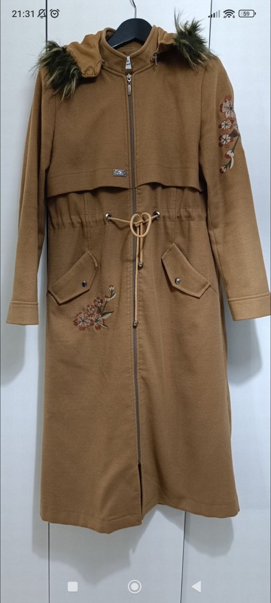 Kahverengi Nakışlı Kadın Kaban