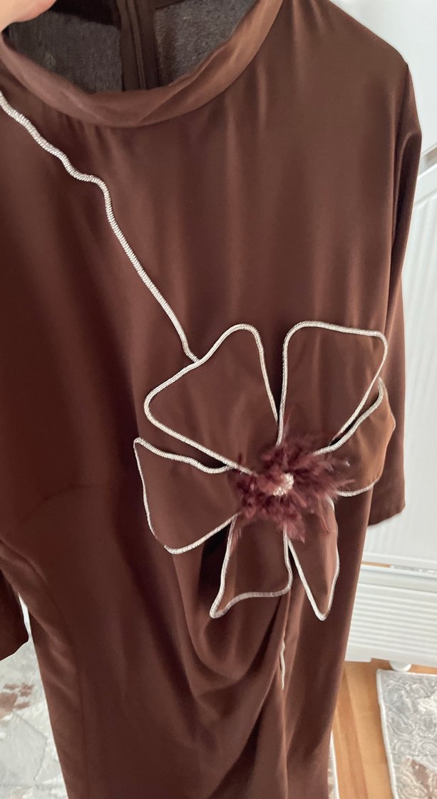 Kahverengi Nakışlı Kadın Uzun Elbise
