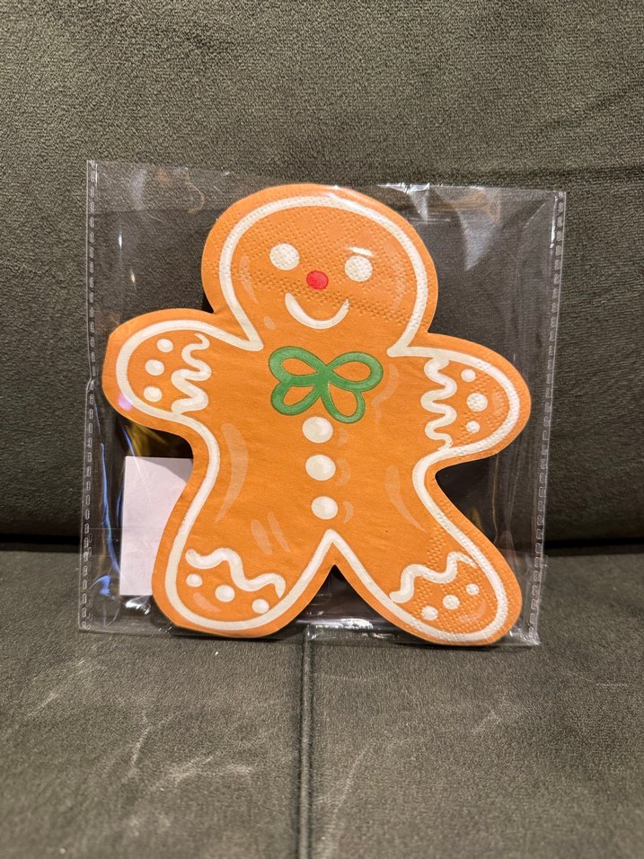 Yılbaşı / Noel temalı zencefilli adam figürlü peçete Yeni ve ambalajında Parti, yılbaşı sofrası, çocuk etkinlikleri ve süsleme için ideal Kaliteli baskı, canlı renkler 20 adettir.