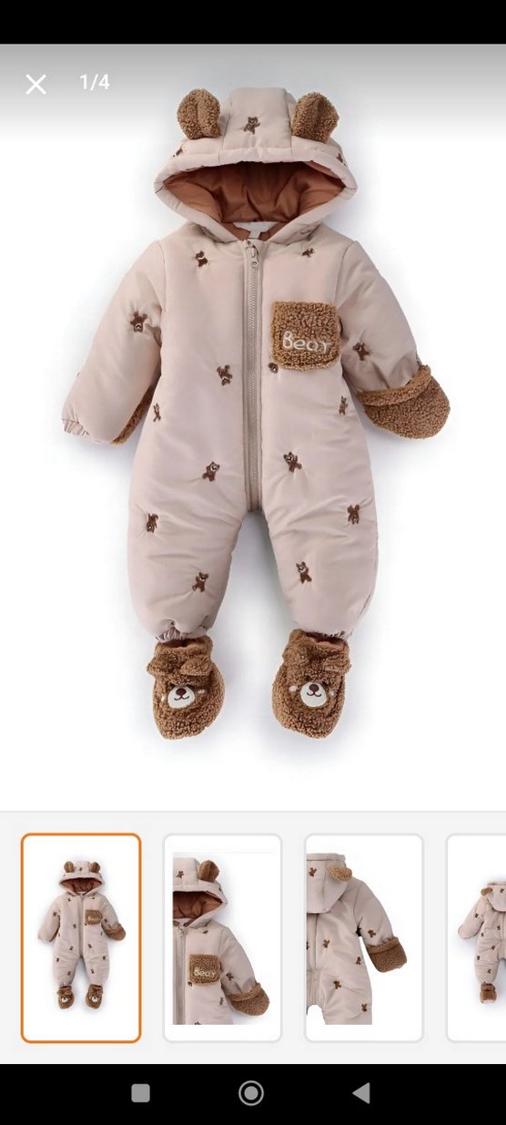 Nakışlı ayıcık desenleri ve kapüşon, manşetler ile ayaklarda kürk detaylı eldiven detaylı pastel kahverengi bebek kiz erkek uyumlu kış tulumu. Notlu yaka tasarımlı. 9 12 M