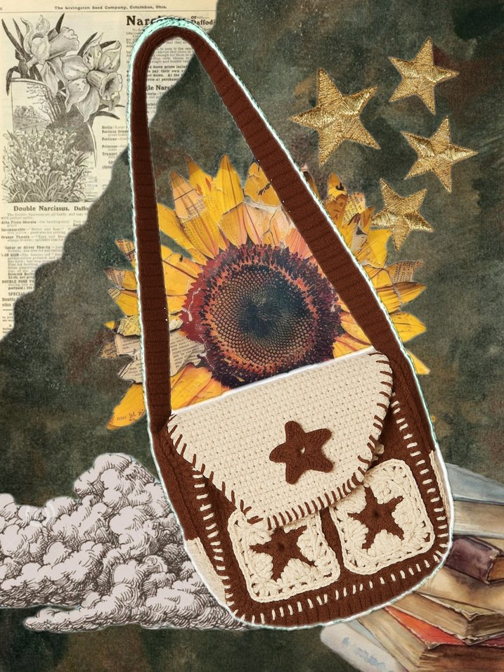Bu ilanı almayınız yorum yazarak sipariş oluşturunuz. Bu resimdekinden farklı bir renk, desen veya boyut isteyebilirsiniz. fiyatlar ona göre değişiklik gösterir. Boyutları ikinci resimde bulunuyor. Pinterest aesthetic yıldızlı fairy grunge core büyük kol postacı çantası kahverengi krem