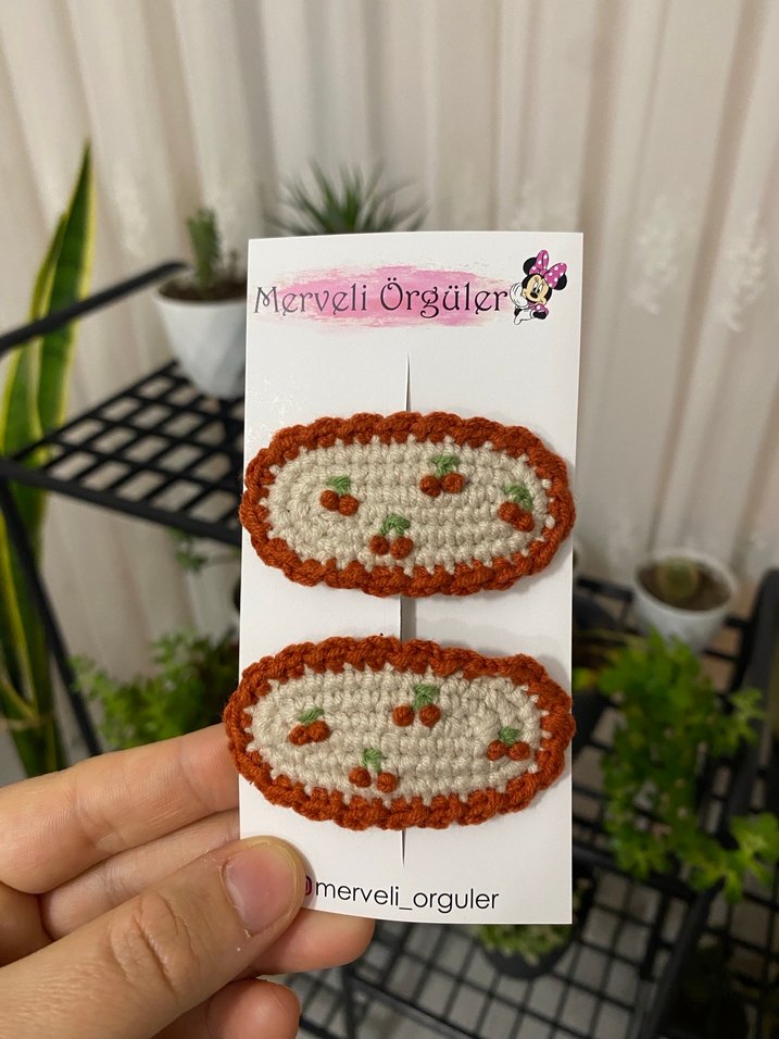 Kahverengi örgü ve nakışlı, bohem ve retro tarzda toka Verilen fiyat tek adet fiyatıdır. İstenilen renkte hazırlanabilir.