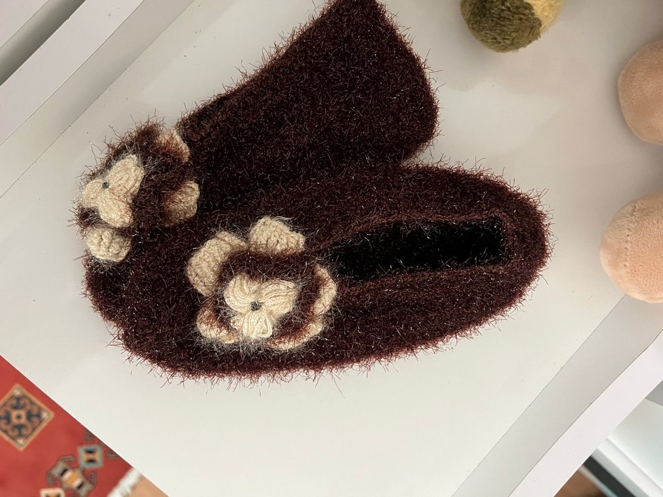 Kahverengi Nakışlı Örgü Kadın Terlik