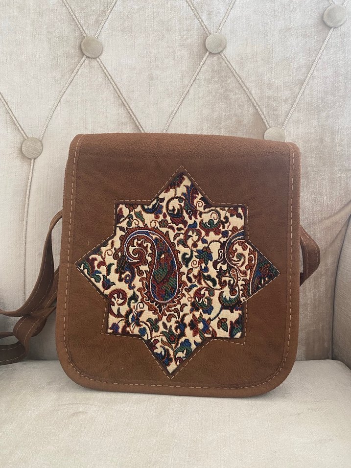 Kahverengi Nakışlı Süet Bohem Kadın Çanta - Görsel 1