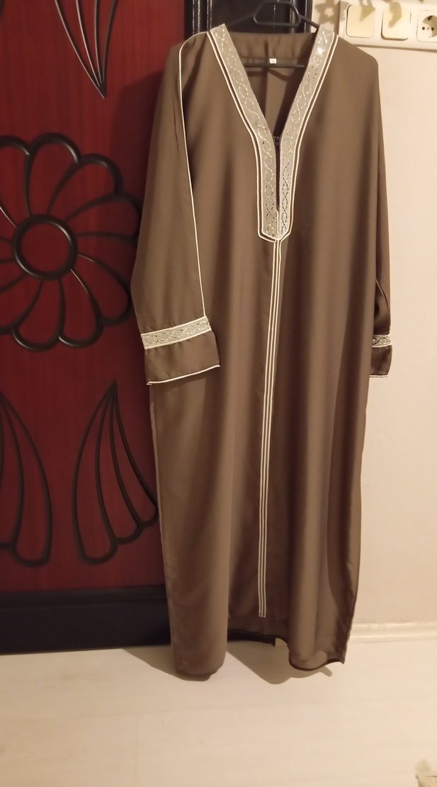 Kahverengi Nakışlı Uzun umre mevlüt elbisesi