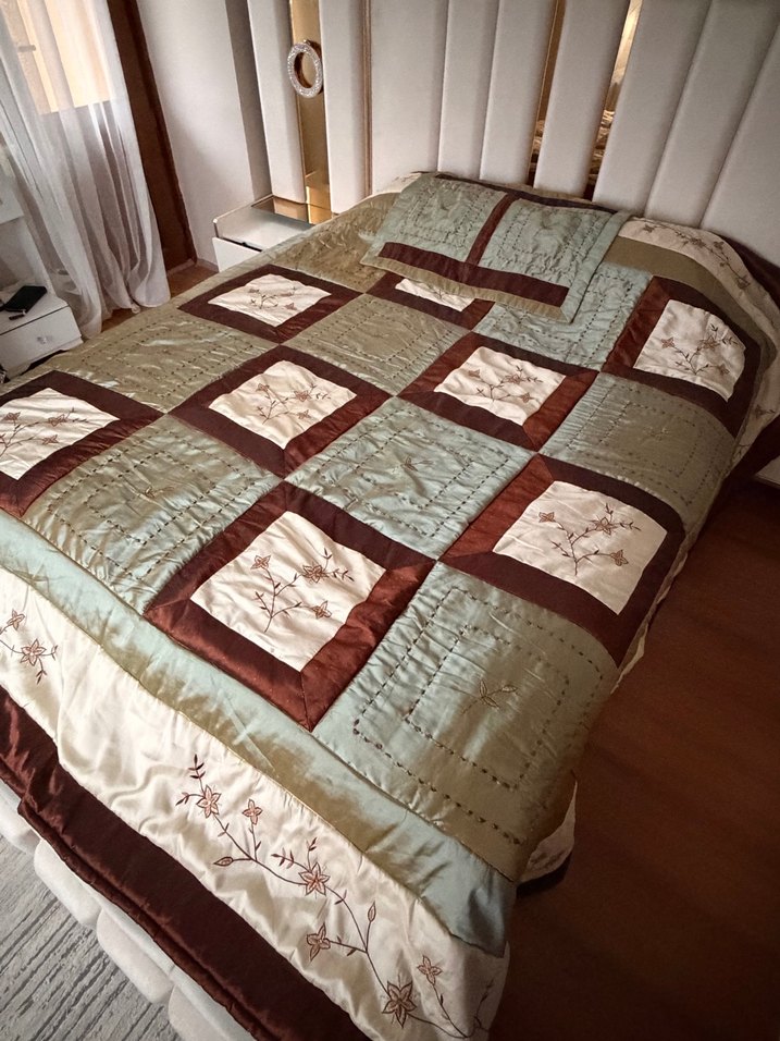 Kahverengi Nakışlı Yatak Örtüsü