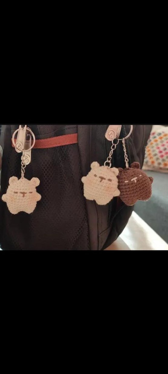 Koyu kahverengi örgü ayıcık tasarımlı, rahat ve şık anahtarlık, gündelik stile uyum sağlar. sipariş alınır.