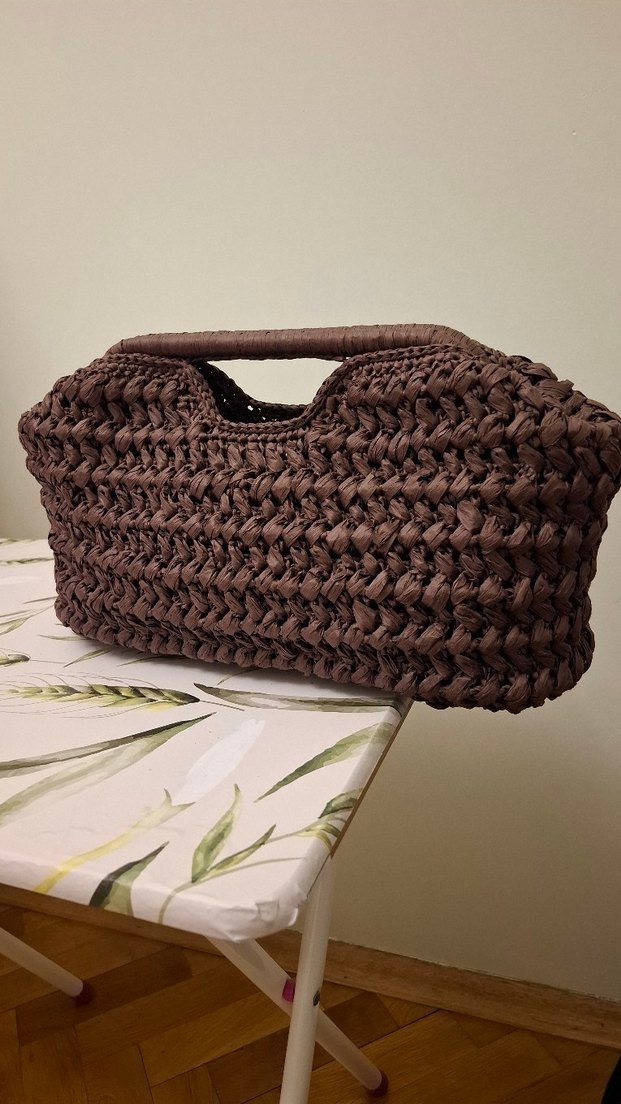 Koyu kahverengi Yumuşak dokulu örgü rafya ip.mangonun en cok satan cantasi aci kahve