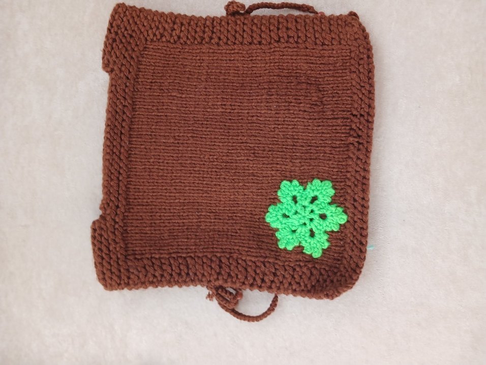 Koyu kahverengi örgüden yapılmış çocuk battaniyesi, yeşil nakışlı çiçek detayıyla yumuşak ve rahat.sifir üründür
