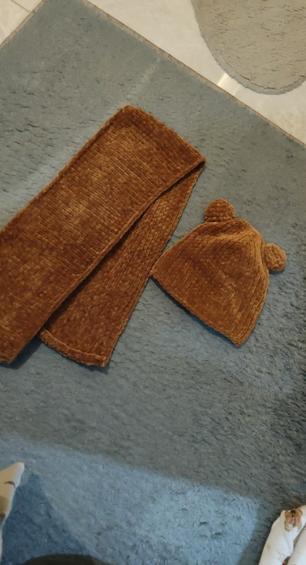 Kahverengi Örgü Çocuk Bere ve Atkı Seti