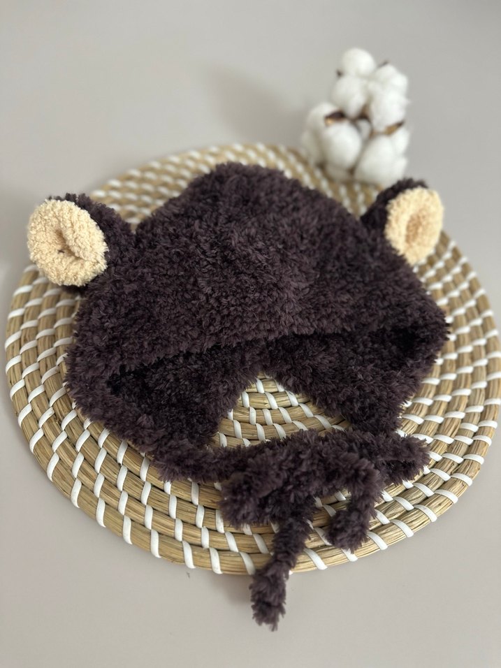 Yumuşak dokulu, kahverengi örgü çocuk bere, sevimli kulak detayları ile bohem tarzı tamamlar. BO BABYKNİTWEAR kendi marka ürünümdür. 2 yaştır.