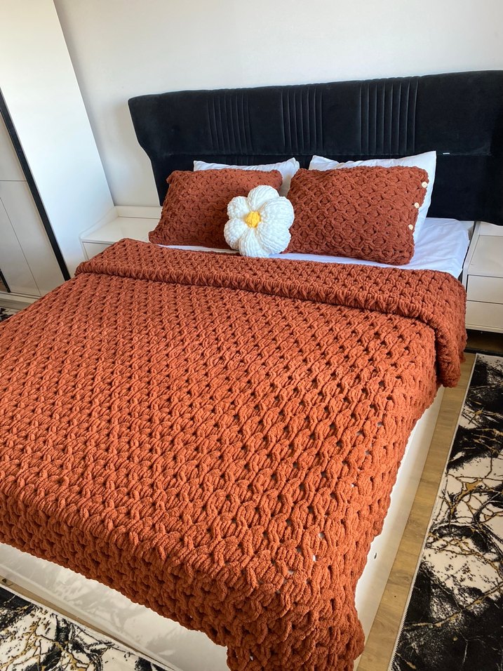 Battaniye 2 adet yastık kılıfı papatya set el emeğidir