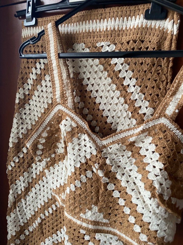 Kahverengi Örgü Desenli plaj ikili takım