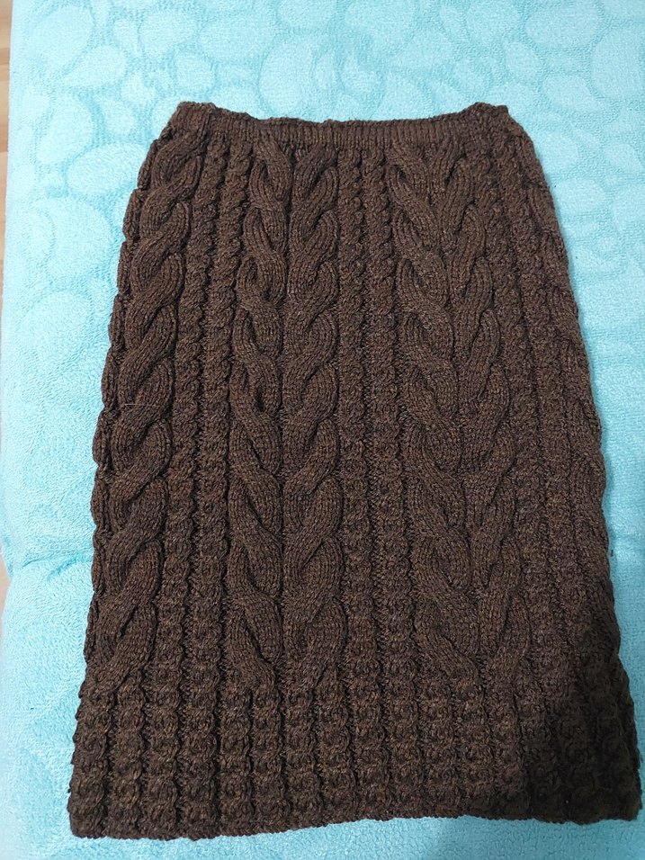 Kahverengi örgü desenli, uzun ve vücuda oturan triko etek, rahat ve bohem tarzda günlük kullanım için uygundur. straplez olarak da kullanilabilirbel 30 cm uzunluk 44 cm