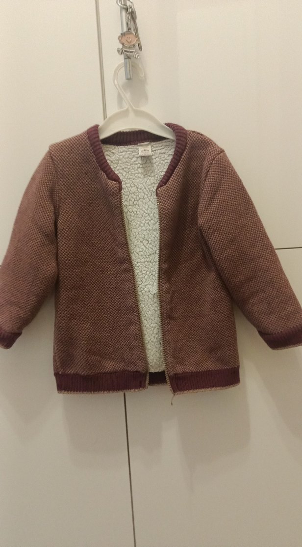 Kahverengi örgü erkek çocuk ceketi, yün malzeme ve bol kesimlidir, yakası kesik yaka ve içi sıcak astarlıdır. fermuari bozuk sadece o yüzden uygun fiyat