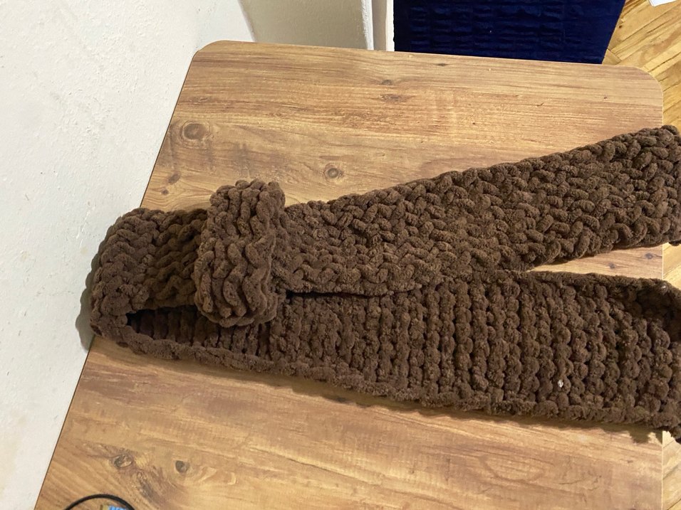 Kahverengi örgü kadın atkı, yumuşak dokusu ve rahat bohem tarzıyla sıcaklık sağlar. İsteniler. Ölçüde yapılır
