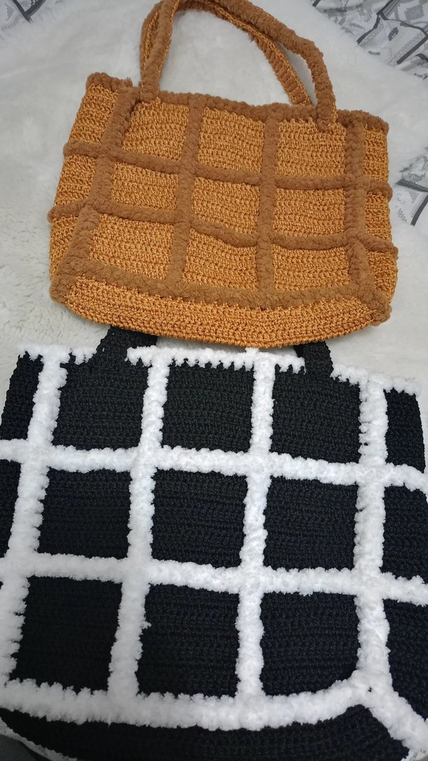 Kahverengi örgü kadın çanta, kare desenli ve bohem tarzda, günlük kullanıma uygun rahat bir modeldir. tane fiyatı