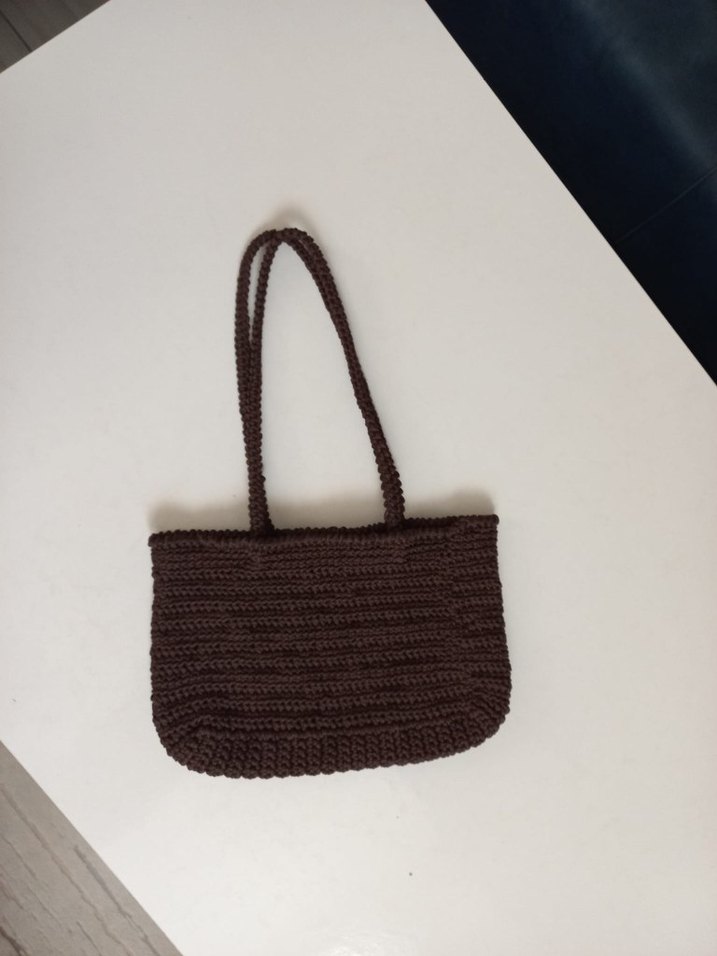 Kahverengi örgü kadın çanta, minimalist ve bohem tarzda, sade ve desensiz tasarımıyla günlük kullanıma uygundur.