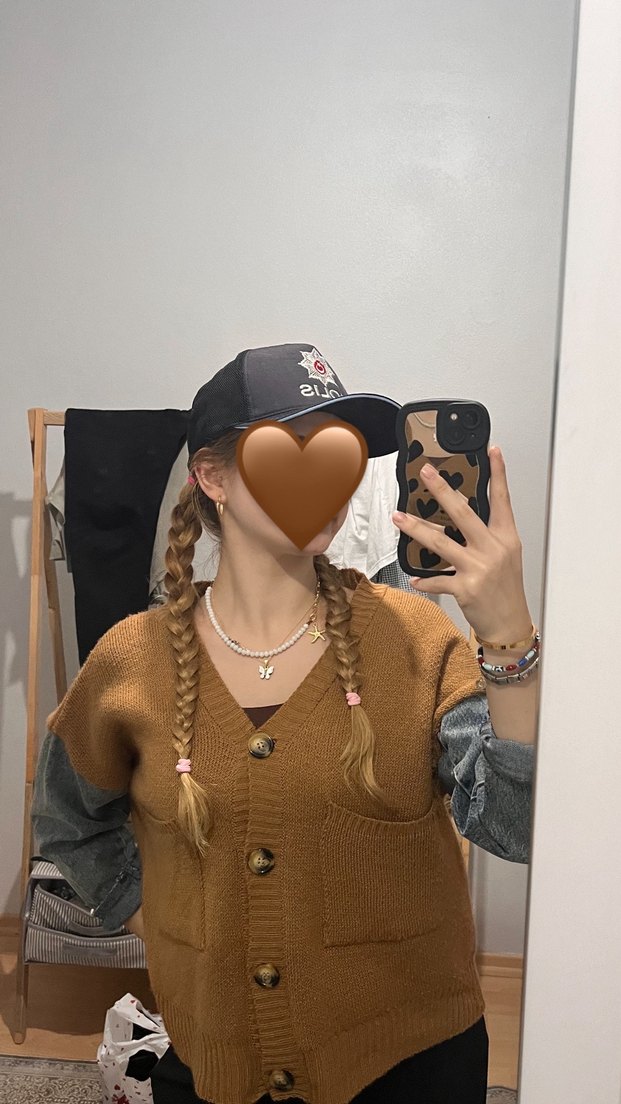 Kahverengi örgü ceket günlük sokak stili için uygun, trend görünümlerle uyumlu.Çok az giyildi temiz
