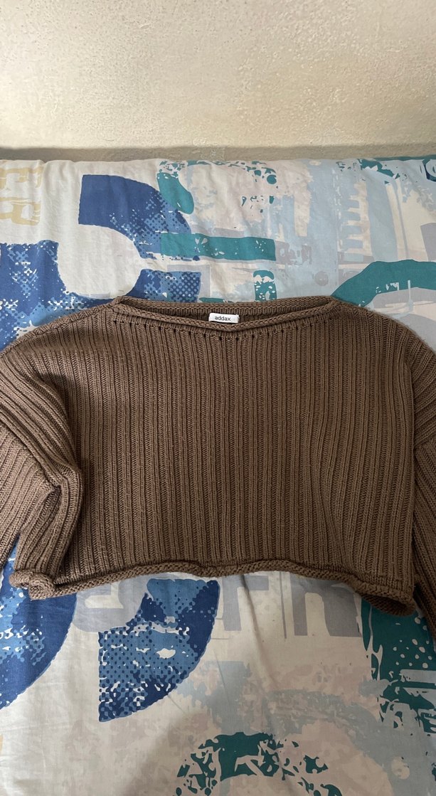 Kahverengi örgü, yuvarlak yakalı, uzun kollu, bol kesim kadın kazak. Normal boyda, sade ve rahat tarzda, günlük kullanıma uygun.