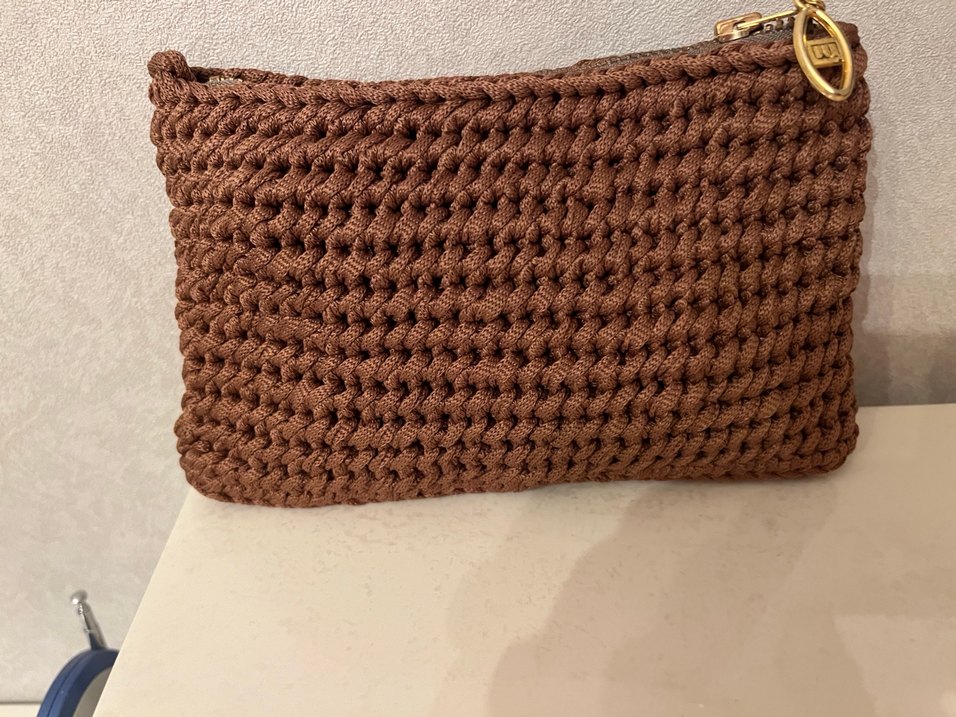 Kahverengi örgü dokusuyla kadın portföy çanta, rahat ve sade tarzda günlük kullanıma uygun. Bohem stiliyle basit ve şık bir görünüm sunar.