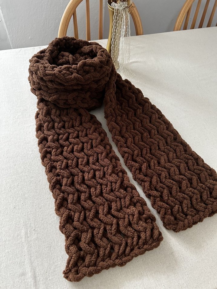 LÜTFEN BU İLANI SATIN ALMAYINIZ İLAN AÇTIRINIZ…İstenilen renk ve ölçüde örülür Kişiye Özeldir Koyu kahverengi örgü kadın şal, rahat ve bohem tarzda dokulu desene sahip. Yumuşak örme kumaştan üretilmiştir, sıcaklık ve konfor sağlar.