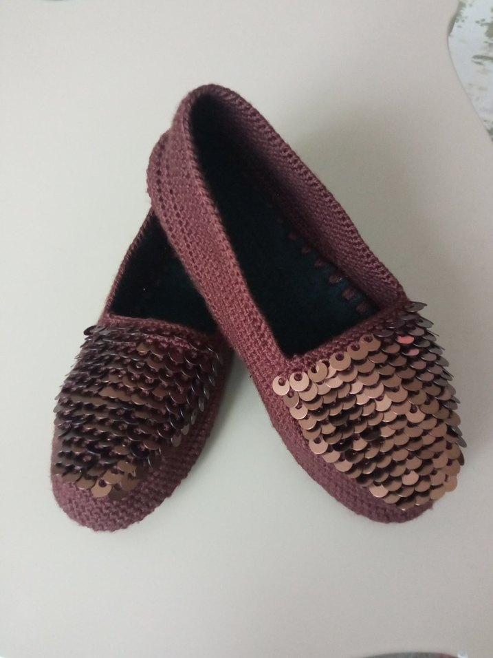 Koyu kahverengi yılan desenli, dolgu topuklu örgü kadın terlikleri. Rahat ve bohem tarzda, günlük kullanım için uygundur.