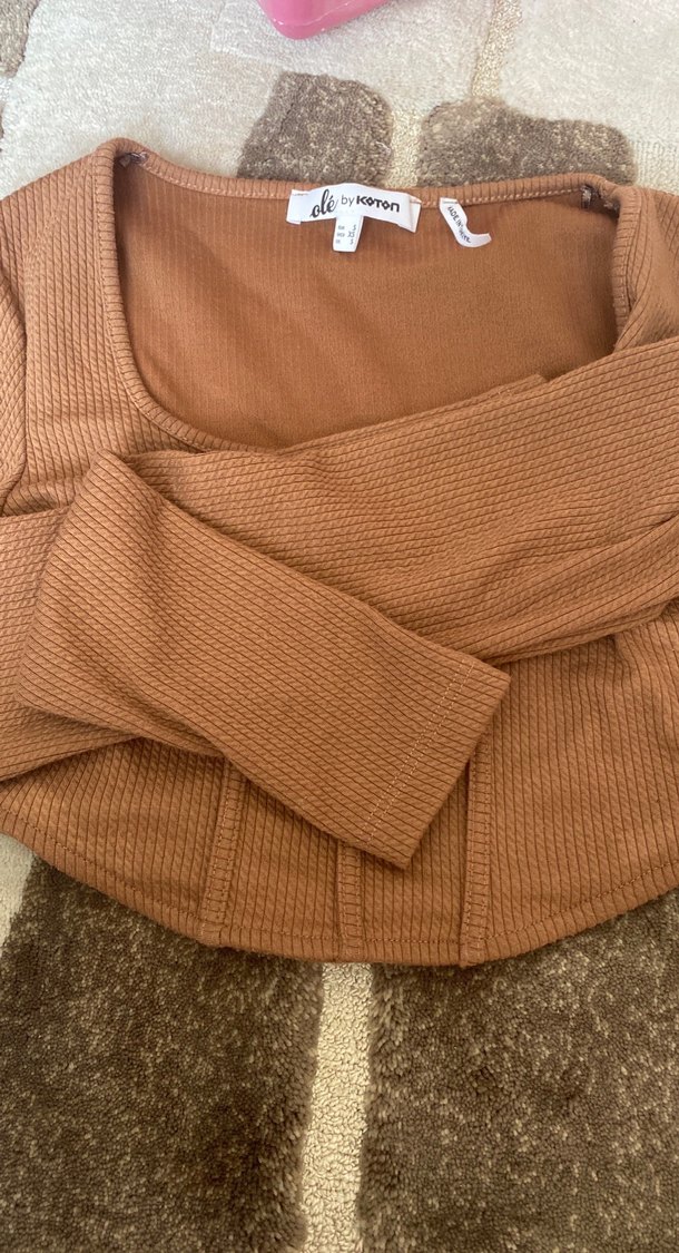 Kahverengi örgü kadın triko, uzun kollu ve tek renk. Vücuda oturan, normal boyda, yumuşak sentetik kumaştan, gündelik kullanıma uygun. Xs beden esnek defosu yok