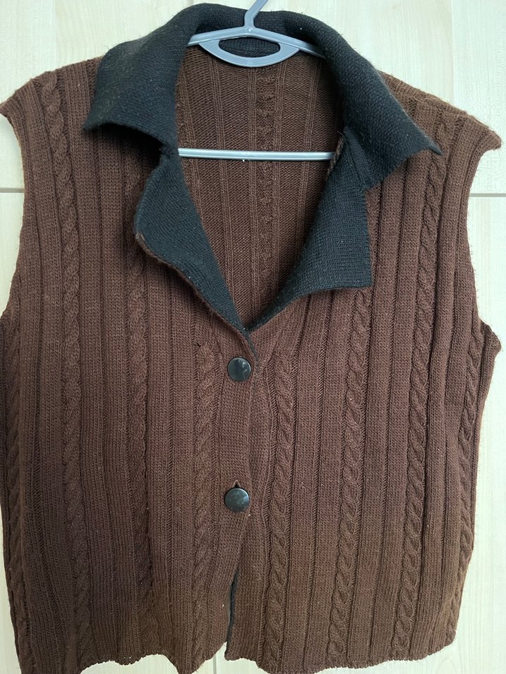 Kahverengi Örgü Kadın Yelek