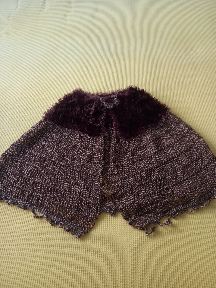el örgüsü, salaş kesim, kolsuz ve boğazlı panço. Düz renk ve yumuşak dokulu.