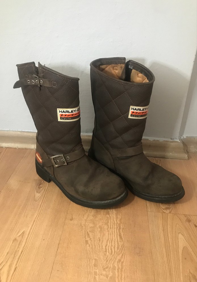 Koyu kahverengi Harley Davidson Orijinal deri biker botlar, yüksek topuk ve tokalı detaylara sahip, günlük kullanıma uygun vintage tarzda. Piyasadaki muadillerin yanında daha dayanıklı, orijinal uygun fiyatta.
