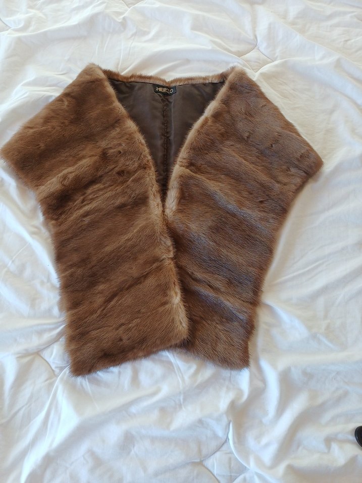 Kahverengi orjinal kürkten yapılmış, straplez ve kolsuz tasarıma sahip, Etol gece icin