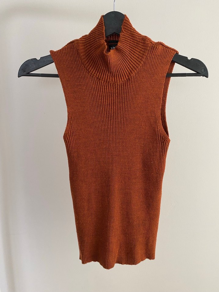 Kahverengi Örme Boğazlı Kolsuz Kadın Süveter