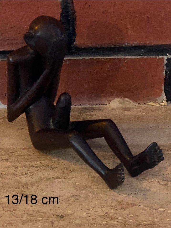 13-18 cm boyutlarında, koyu kahverengi oturan erkek figur