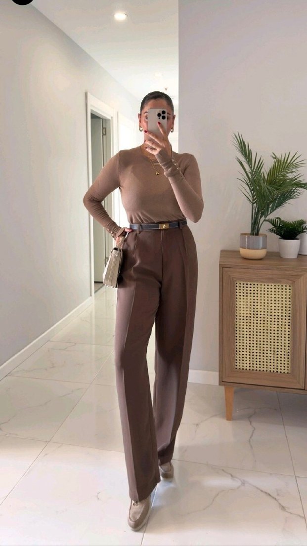 Kahverengi Palazzo Kadın Ofis Kumaş Pantolon
