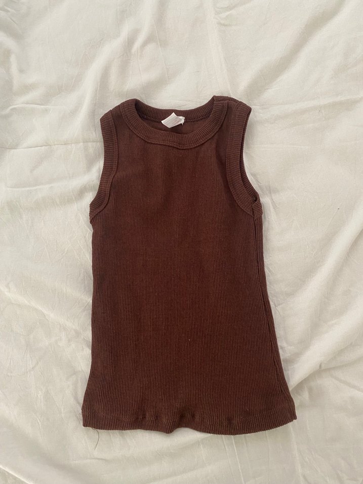 Koyu kahverengi, kolsuz,S beden crop hiç giyilmedi S m uyumlu dar duruşuna bakmayın vücuda esneyerek tam oturuyor